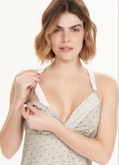 Camisola possui alça em microfibra (malha com toque geladinho), e fecho ideal para quem está amamentando