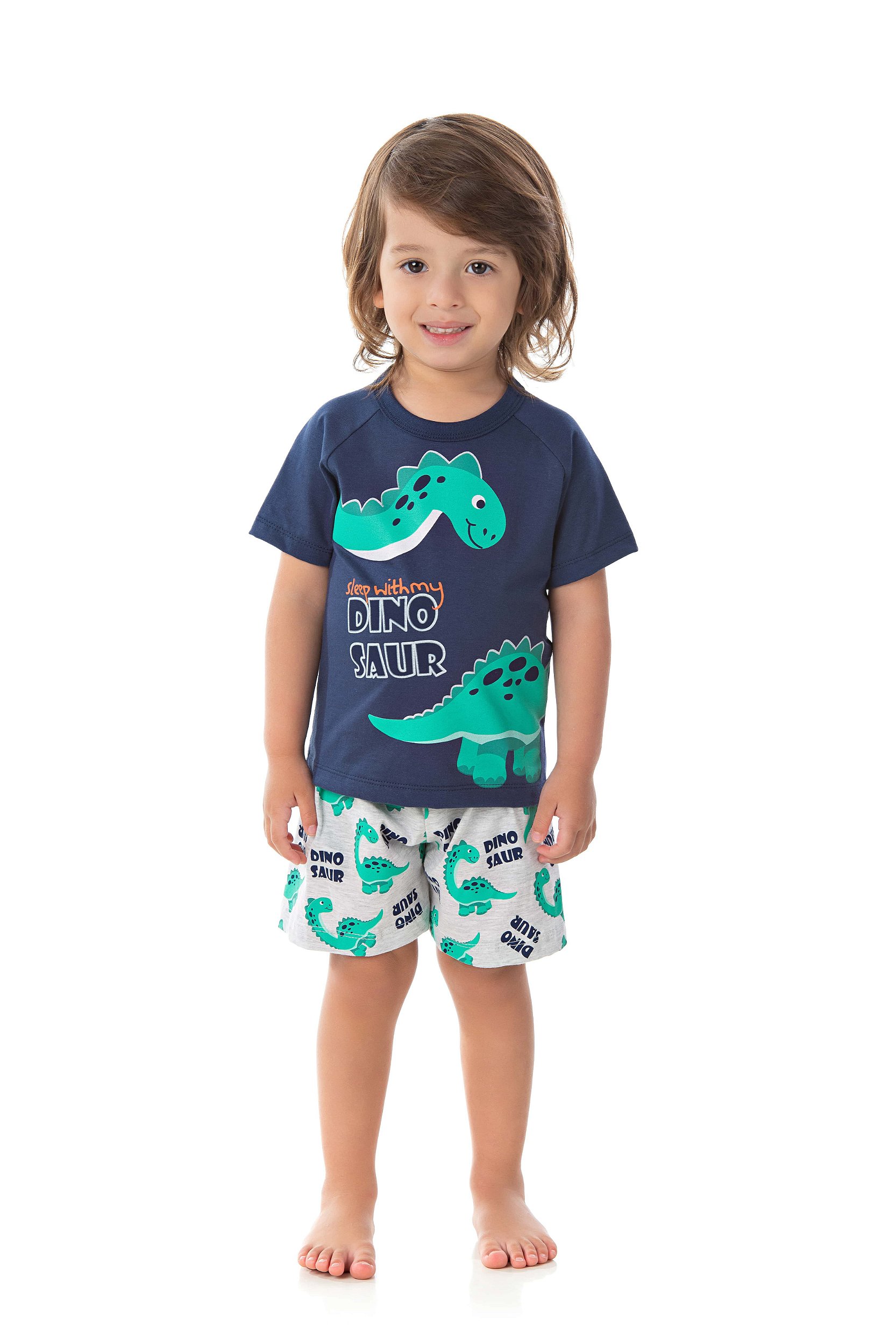 Lindo Pijama Bicho Bagunça para meninos . Modelo camisacom manga e gola redonda. Tecido leve de algodão que facilita a transpiração e mantém o seu bagunceiro confortável durante o sono. Acompanha bermuda, com elástico na cintura e em tecido algodão com poliéster para maior conforto. Estampa com escrita Sleep Withing Dino Saur, com detalhes que brilham no escuro deixam a hora de dormir ainda mais divertida.