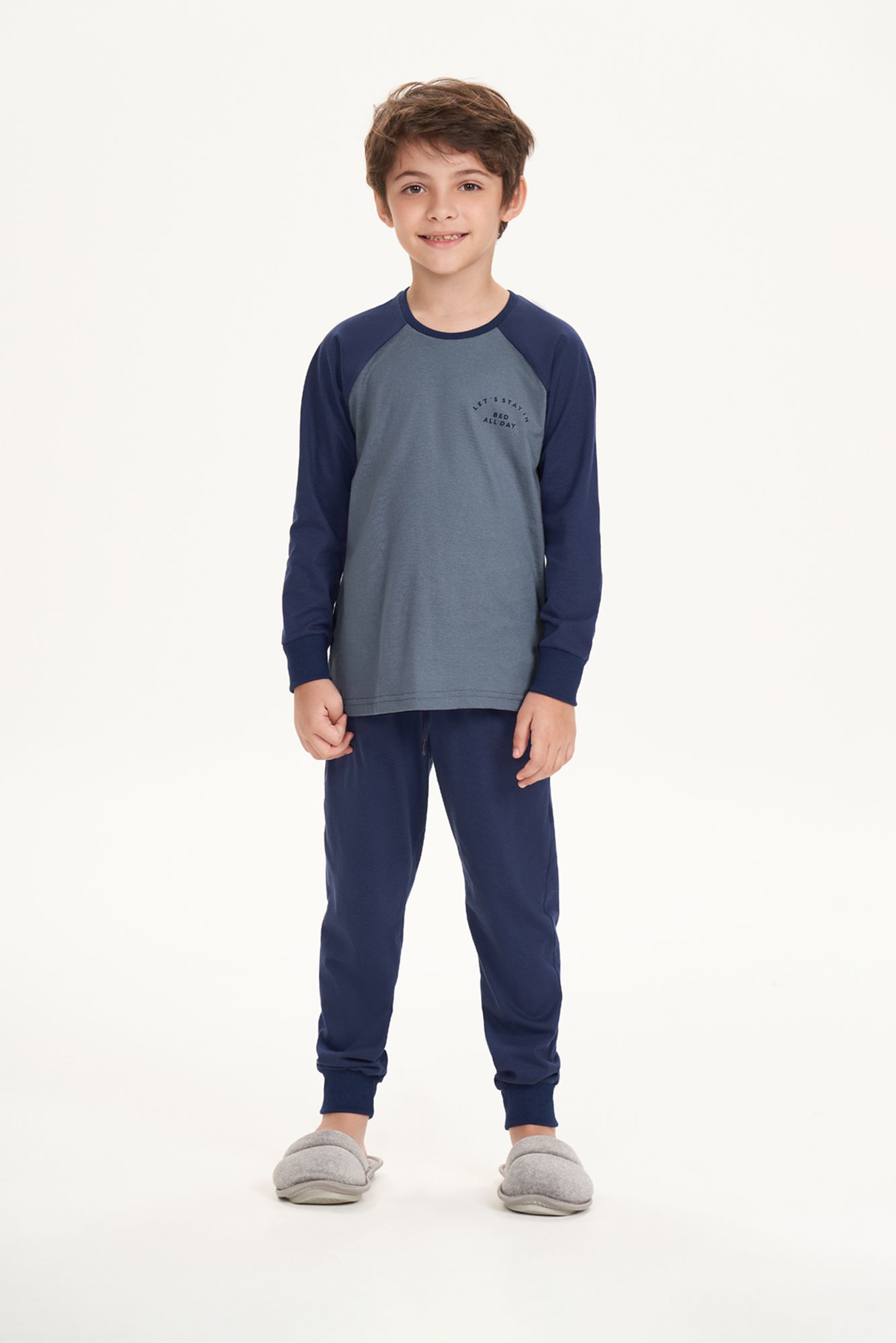CONJUNTO EM MEIA MALHA 100% ALGODÃO, BLUSA COM MANGA RAGLÃ CONTRASTANTE COM PUNHO EM RIBANA CANELADA AJUSTADA PARA MAIOR CONFORTO NA HORA DE DORMIR. ESTAMPA LOCALIZADA NA LETRAL ESQUERDA DE QUEM VESTE. CALÇA COM CINTURA EM ELÁSTICO 4 CM COM AMARRADOR EM CADARÇO DE ALGODÃO FUNCIONAL, BOLSO MOLDE EMBUTIDO E MODELAGEM JOGGER. VOCÊ PODE OPTAR NA COMPRA DA FAMÍLIA INTEIRA, PARA AS NOITES MAIS DIVERTIDAS