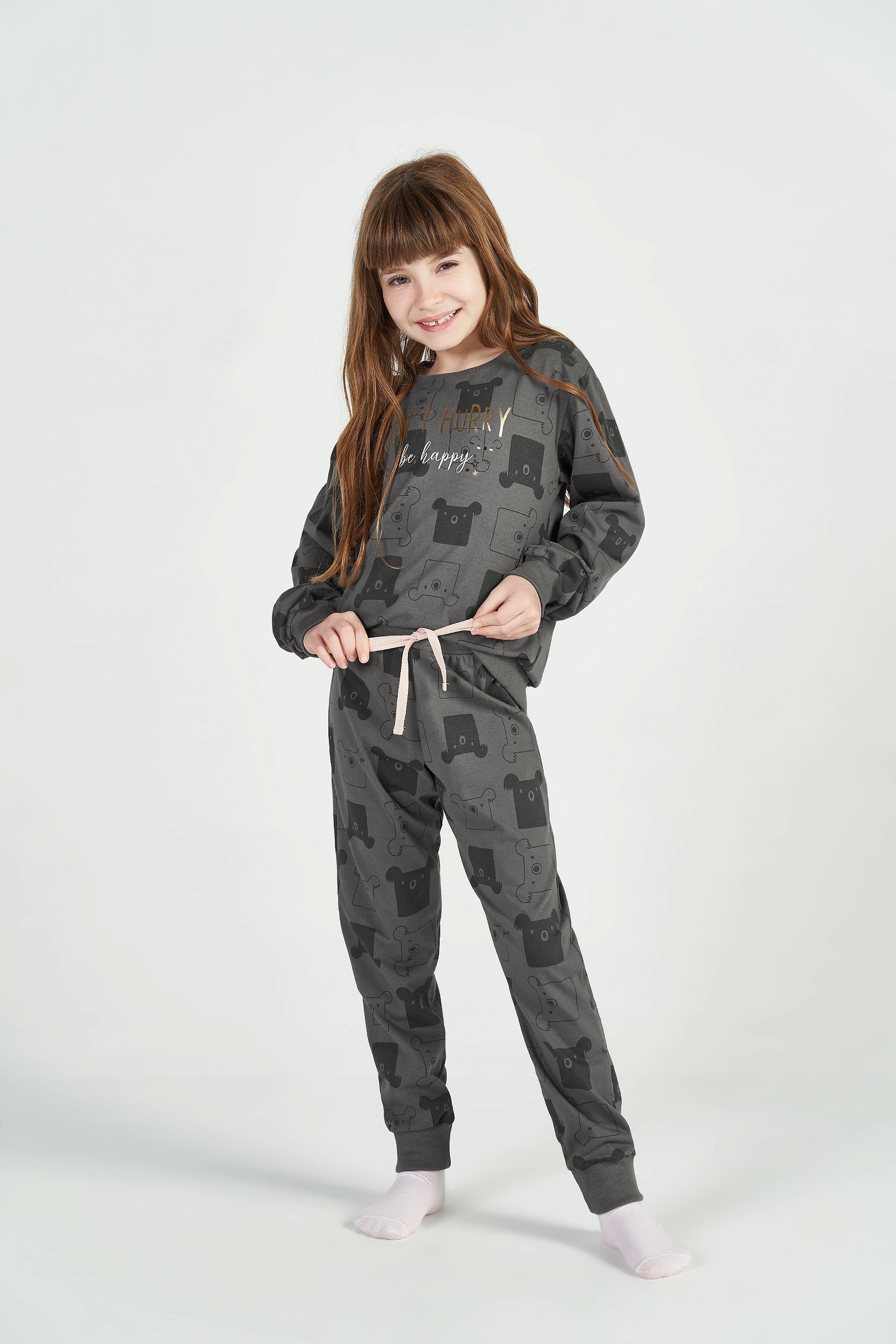 Conjunto em meia malha penteada 100% algodão com estampa total de koala camuflado em tons de verde. Decote em ribana canelada com cobre gola em cadarço de algodão rosa.Estampa localizada na frente com foil dourado com detalhes em rosa. Barra e punho com acabamento em ribana canelada. Calça com modelagem jogger com cós e punho em ribana canelada e detalhe de falso amarrador em cadarço de algodão rosa.Você tem a opção de compra o pijama da mãe coordenando com a filha!