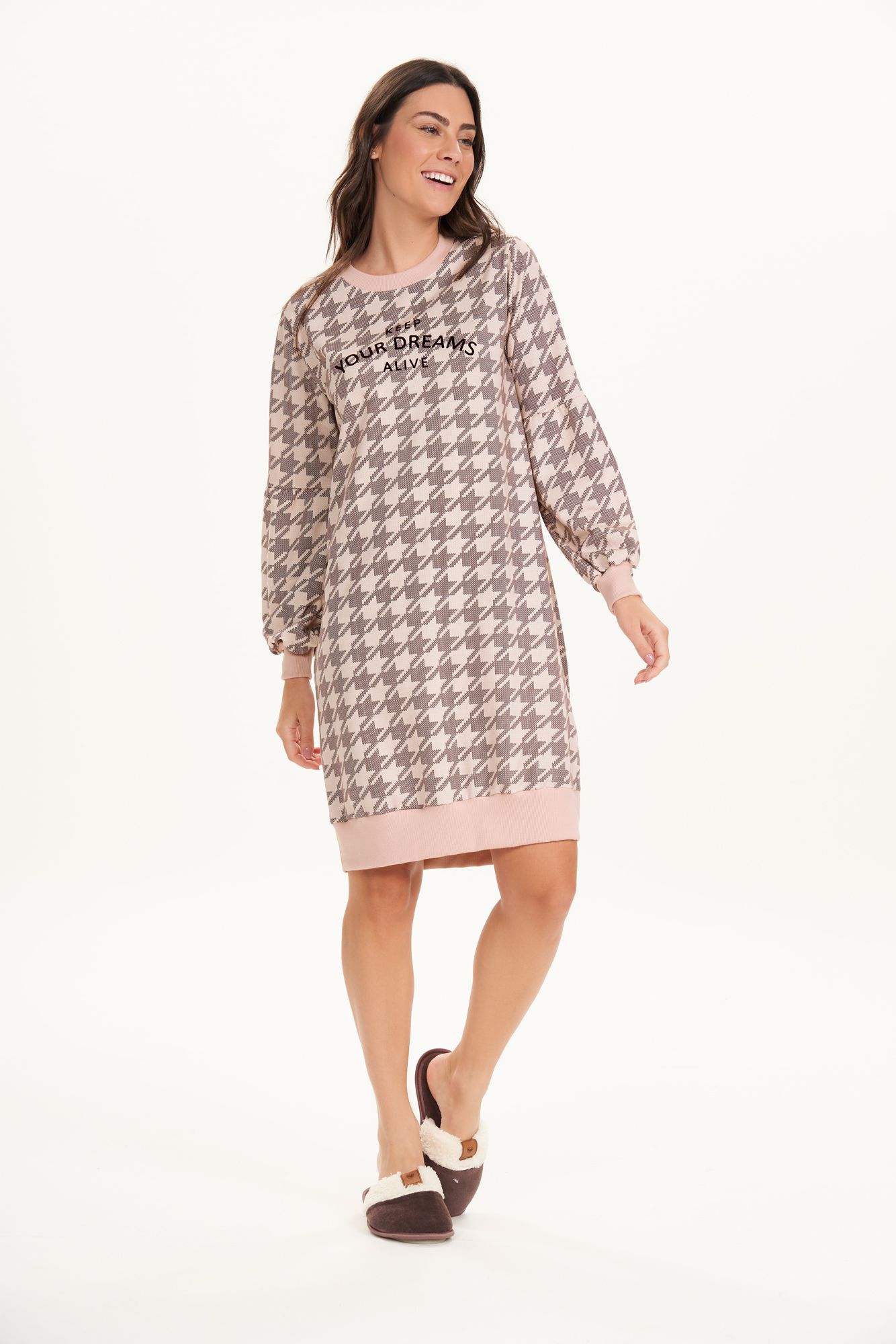 DESCRIÇÃO : Gola molde em Ribana canelada, com cobre gola em viés contrastante. Estampa localizada com flocado Keep your dreams alive "Mantenha seus sonhos vivos". Mangas com recorte em leve franzido formando manga lanterna. Barra molde molde em Ribana canelada. Punho molde em Ribana canelada.